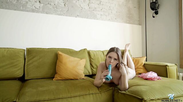 Skinny and young hottie Runaway Bride stimulates her shaved pussy