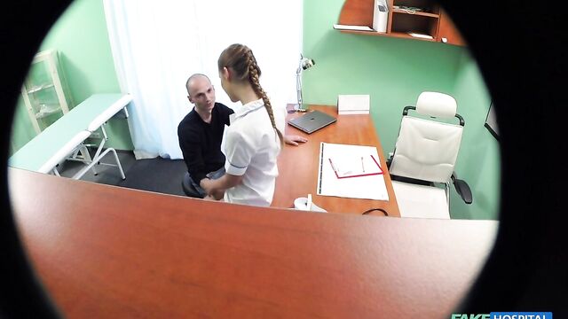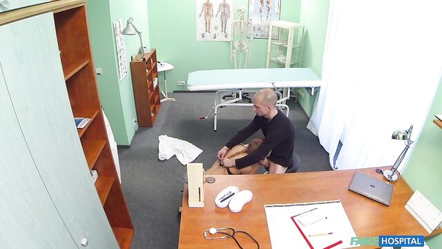 Sexy young doctor with a perfect body fucks with a bald boyfriend