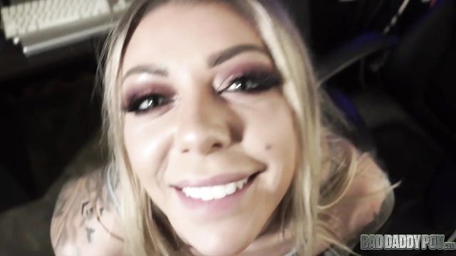 Description:Karma Rx enters her stepfather’s office without any hesitation. She wears a gray spaghetti-strapped top and a pair of black shorts. Her top is too tight making her big tits seem bigger than they are. Her tattooed arms are exposed. Her shorts are also too tight, almost showing her white butt. Karma sits in a black computer chair, the desktop behind is still turned on. It seems that she came in while her step daddy is busy with work. She bites her lower lip trying to catch his attention. She has heavy makeup on her face. Her so-called step daddy is very hesitant with what his step daughter wants. He just doesn’t want to cheat on his partner. But she wouldn’t take no for an answer. She wants to fuck him and she wants to fuck him now. Without any permission from her step daddy, Karma hurriedly kneels down and opens and pulls his pants down, setting his dick free. It isn’t hard yet but that isn’t a problem. She grabs his big cock and takes its full-length inside her mouth. She gives him a blowjob until his dick is hard. She then takes her top of exposing her big tits. She places his big hard cock in between her breasts before squeezing them hard until both are wrapped tightly around his cock. Karma now turns her back from her step daddy showing her big tattoo at the back. She slowly takes her shorts off, teasing him. With her bent down, the family roleplay begins. He finally gives in. He gently thrusts his hard dick inside her pussy. She moans lightly as her pussy slowly opens up to give way to his cock. Step daddy is about to reach his peak. Karma takes control of the situation. She pulls his dick out from her pussy. She then sits on a chair, spreads her legs and masturbates by herself. She wants him hard and throbbing for her. Seeing his face, he is about to come. Karma Rx approaches him, kneels down on the floor and sucks his dick. She then places his dick in between her breasts until he orgasms. He releases his cum all over her breasts. She happily leaves the room after the sexy time with her step daddy.