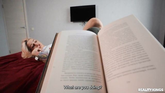 Description: It's hard to concentrate on even the best book when your cute blonde girlfriend is horny and trying to get your attention! Belleniko tries rubbing her bf Nik Wondes's cock through his pants, then pushing up her shirt to play with her perky little tits. He keeps peeking as she fingers her pussy, and puts his book aside to rub her clit, then slide a dildo into her tight ass! Belleniko wants an anal pounding with the real thing, and Nik gives her just that!