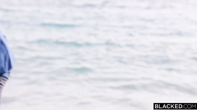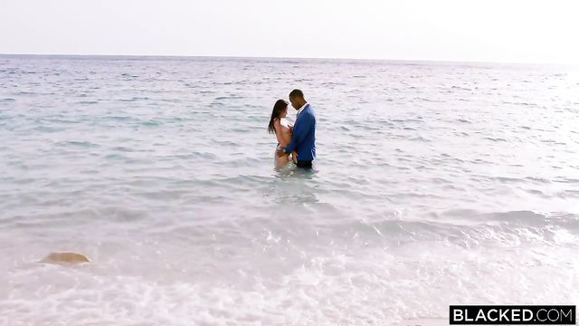 Hard interracial porn on the beach with a hot brunette Milena Ray