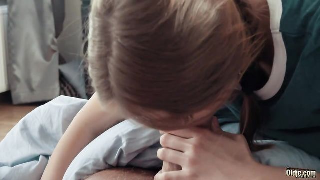 Description: Boris is feeling tired, sitting in bed until he recovers. Julia comes to see if he is feeling all right. She brings him a hot tea, seeing she is in a giving mood he asks for a massage. Getting on top of him she starts massaging his back and giving him smooches to try and make him feel better, but that's not all she has in mind, she then starts massaging her tits while massaging him. Dry humping on his back Julia starts to rub her pussy. Looks like Oldje didn't get the hint from her dry hump, she gets him with his face up so she can start jerking him off. He starts feeling better after she starts licking and sucking his dick, gently going down his shaft to lick his balls. She gets her shirt off letting him suck on his tits and gets on her back for him to nibble on her clitoris. Julia is now ready to take in his big cock. Rubbing her clitoris and her nipples she gets closer to orgasm. She's not ready yet to finish so she gets on top and rides him like a cowgirl. Moans get more intense as he fucks her from the back and kisses her passionately. She now waits for him to finish in her mouth, licking his dick until he cums.