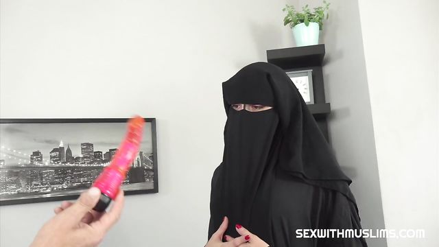 Description: Upset husband caught his Muslim wife with a dildo. She lied to him that it was not a dildo, but a light. He decided to punish her with a spanking and a hard cock.