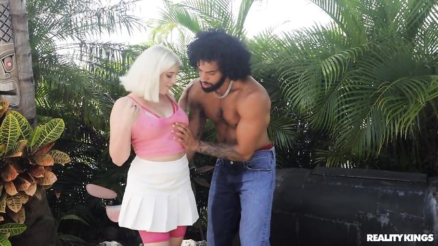 Aesthetic blonde hottie Gia OhMy rides on a big black dick in the bed