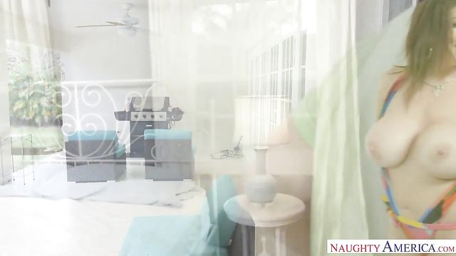 Description: Sara Jay is using her friend's pool, but she's more interested in using her friend's boyfriend.