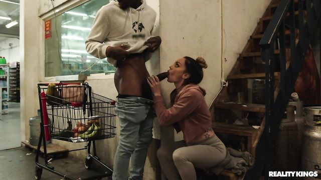 Description:Damion Dayski is trying to be sneaky as he films hottie Leila Larocco's sexy tits and tight ass in her workout clothes at the grocery store, but he's not sneaky enough, because Leila catches him looking. That just makes her start teasing him on purpose, tipping him a huge wink after teasing him with produce, then pulling down her leggings to shake her bare ass at him! Leila takes out her tits, then leads him to the back of the store where she sucks his cock, fucks him and takes a facial!