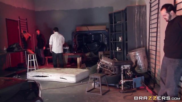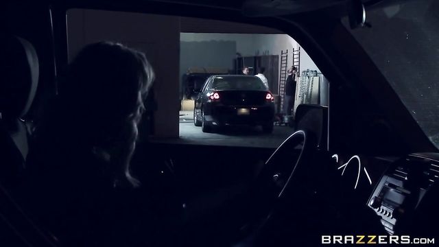 Curly-haired blonde with big bottom Dahlia Sky fucked in the garage