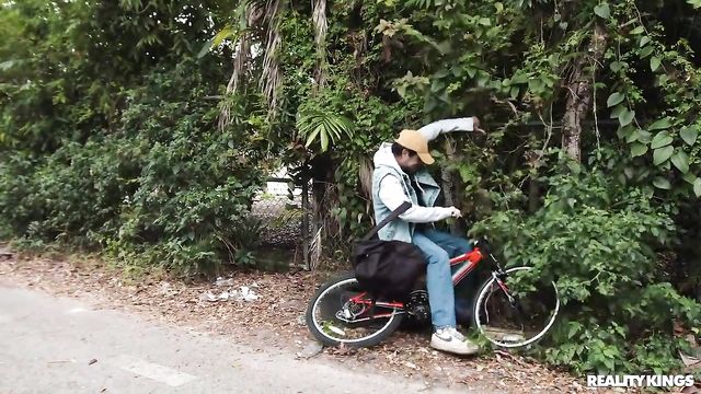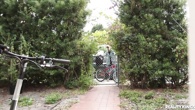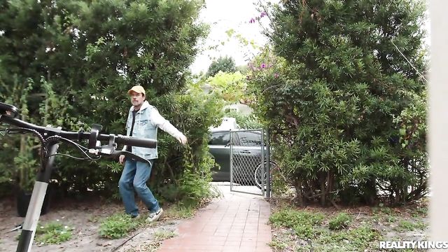 Description: Busty blonde Blake Blossom's beautiful boobies bounce every time she goes over a bump on her scooter! That's not enough for this exhibitionist, who also delivers upskirt shots of her pretty pussy and takes out her tits to flash passers-by! Lucky Oliver Flynn is out on his porch when Blake scoots by, and he gives her a look at his big dick that's so enticing, she gives him a scooter bj, causing a nearby horny cyclist to crash! As the cyclist tries to peek through the windows, Oliver brings Blake inside where she sucks his cock and he fucks her on the couch. That dick is definitely Blake's favorite thing to ride!