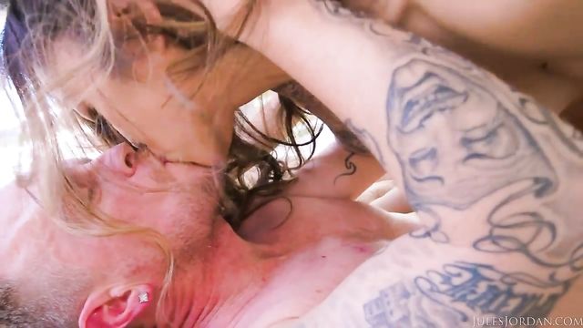 Description: Alexia Anders delivers her unique brand of petite and pouty in this scene from Jules Jordan.com. The sexy starlet with the big brown eyes and flowing long hair enlivens an outdoor stoop. Her body sets off ornate see-through lingerie with flesh toned stockings. Her greyhound frame is a treat to enjoy during tease. Adept at staring through the camera, Alexia beams when she makes her way onto a bed. She treats us to a little self-pleasuring as the camera focuses on her pussy. Next she sets her attention to Jules Jordan’s cock. She pulls it from his trousers and gives a nice, long, submissive bj. Complete with slobber infused deep throating and a heavy dose of those eyes…The pixie’s glitz continues when she displays her ample flexibility. Jordan puts all his weight on one of Anders’ thighs as she draws it to her chest. POV of Alexia Anders’ missionary with her neck cranked is stellar. That peeper feeder is one upped when she gets into doggy and drapes a leg up on the corner of a daybed. Jordan presses both hands on her back and drills. The sexy lass rides Jordan in cowgirl, wiggling her hips then reversing. Alexia Anders sucks off Jordan. He “decorates her pretty little face”, Anders happy about her accomplishment. She giggles and shimmies on fade…