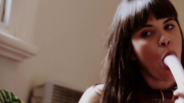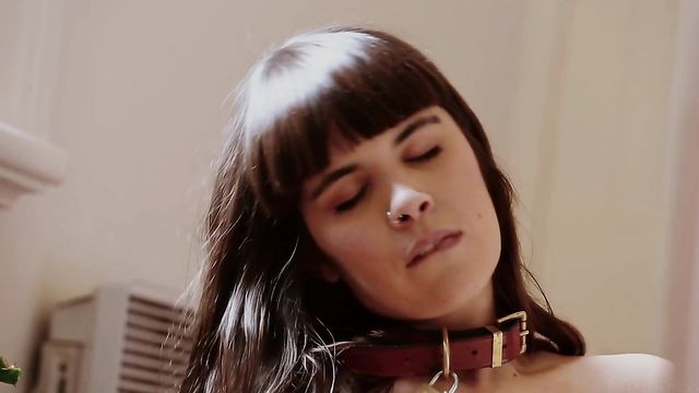 Description: Smoking-hot Hispanic honey Blake Wilde is home alone and indulging in a little self-massage. Curvy with a nose piercing, tattoos and long dark hair with bangs, she kneels on a fluffy rug in front of a large mirror, dressed in a black bra and matching peekaboo panties that leave the top half of her ass exposed. She strips to reveal large, natural breasts and a trimmed pussy, then pours oil into her palms and massages it over her legs. Next, she glides more over her globes, kneading them and stroking her nipples, then over her rounded ass cheeks. Soon, her body is glistening with oil – and she’s horny and ready to get her kink on. Gazing at her reflection all the while, she grabs a brown-leather collar with a heavy golden chain leash, teasing herself with the chain for a short while before buckling the collar around her neck. She begins to masturbate, breathing deeply, in a lust-fueled trance. Her oil-slicked fingers stroke and circle over her clit then plunge deep inside of her wet pussy. Next, she grabs a vibrator and sucks on it voraciously, coating it with drool. She rubs it against her slit then switches it on, tits wobbling as she buzzes her clit. Then she sinks it in her snatch, letting out little yelps of delight as it hits the sweet spots deep inside of her. After a short while she rolls on her side, reaching back to plow herself from behind, bare toes pointed in pleasure. Once again she sits up, thighs splayed and knees bent, pounding her pussy harder and faster with the vibe. As she reaches the brink of orgasm, she pulls out the toy and grinds it against her swollen clit, holding back as long as she can – then she whimpers as release ripples through her. When she can’t cum any more she drops the vibe and strokes her tender pussy, then turns her attentions to her fantastic breasts, massaging them with a look of total bliss on her face…