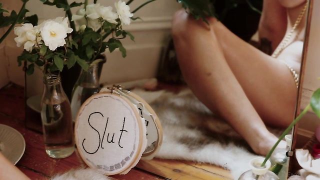 Description:Smoking-hot Hispanic honey Blake Wilde is home alone and indulging in a little self-massage. Curvy with a nose piercing, tattoos and long dark hair with bangs, she kneels on a fluffy rug in front of a large mirror, dressed in a black bra and matching peekaboo panties that leave the top half of her ass exposed. She strips to reveal large, natural breasts and a trimmed pussy, then pours oil into her palms and massages it over her legs. Next, she glides more over her globes, kneading them and stroking her nipples, then over her rounded ass cheeks. Soon, her body is glistening with oil – and she’s horny and ready to get her kink on. Gazing at her reflection all the while, she grabs a brown-leather collar with a heavy golden chain leash, teasing herself with the chain for a short while before buckling the collar around her neck. She begins to masturbate, breathing deeply, in a lust-fueled trance. Her oil-slicked fingers stroke and circle over her clit then plunge deep inside of her wet pussy. Next, she grabs a vibrator and sucks on it voraciously, coating it with drool. She rubs it against her slit then switches it on, tits wobbling as she buzzes her clit. Then she sinks it in her snatch, letting out little yelps of delight as it hits the sweet spots deep inside of her. After a short while she rolls on her side, reaching back to plow herself from behind, bare toes pointed in pleasure. Once again she sits up, thighs splayed and knees bent, pounding her pussy harder and faster with the vibe. As she reaches the brink of orgasm, she pulls out the toy and grinds it against her swollen clit, holding back as long as she can – then she whimpers as release ripples through her. When she can’t cum any more she drops the vibe and strokes her tender pussy, then turns her attentions to her fantastic breasts, massaging them with a look of total bliss on her face…
