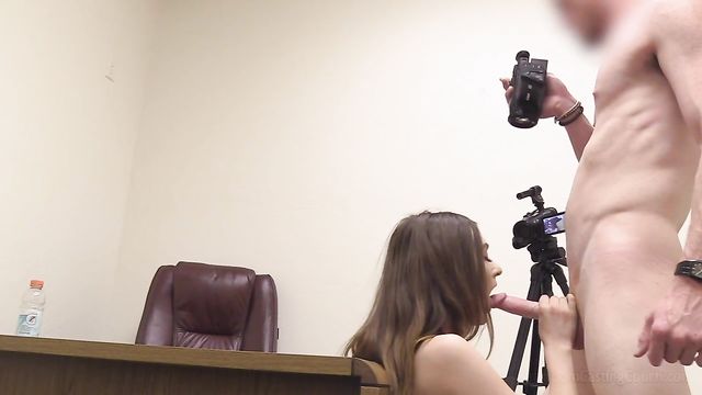 Description: I think watching so much porn every day, we sometimes forget how big of a cock Jake actually has. Thankfully, 19 year old local cum depository Molly reminds him of it, several times. She says she can usually deep-throat herself on cocks but not with Jake's schlong, too big. She tries though, that little trooper. What she also can't do is take it up her tiny ass. Or lez out with girls unless for cash. Maybe. Or not sound like a total sugarbaby angling for her next daddy. Agent Jake tries out a few new camera angles to compensate for our tiny (and temporary!) new office, so please excuse the occasional less-than-optimal view. Molly has a great body and is slutty enough to suck and fuck for a living. But let's be honest - she has neither the brains nor the energy to be a real pornstar. So we don't feel too bad when Agent Jake cums in her mouth and sends her packing without a job or a check.