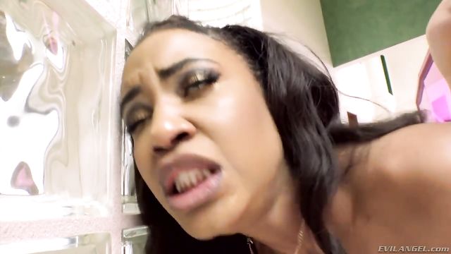 Description:Fresh-faced black beauty Demi Sutra is an all-natural minx eager for an interracial scene with heavily hung stud/director Mick Blue. The slender goddess, clad in lacy white stockings, shows off her sweet bubble butt. Gagging on Mick's big white cock, she gives him a wet, deepthroat blowjob. The older man slides his fat dick deep inside Demi's hairy pussy. He fucks her while she buzzes her clit using a massager. Demi lewdly rims Mick's anus, and he cums in her open mouth.