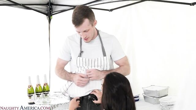 Description:Alice Visby's parent's threw a bit of a party and hired Alice's friend to cater. Her friend brings her brother, Brick, to help out at the event and Alice has had her eyes on him. When Alice gets Brick alone, she decides to tip him for his excellent service by blowing him and taking his cock in her guest house.
