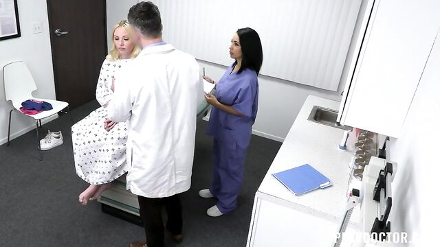 Description:After experiencing dryness in her vagina, Dixie visits Dr. Mancini and his trainee Lauren. The doctor assesses Dixie’s problems, and has just the solution for getting the juices flowing again down there!