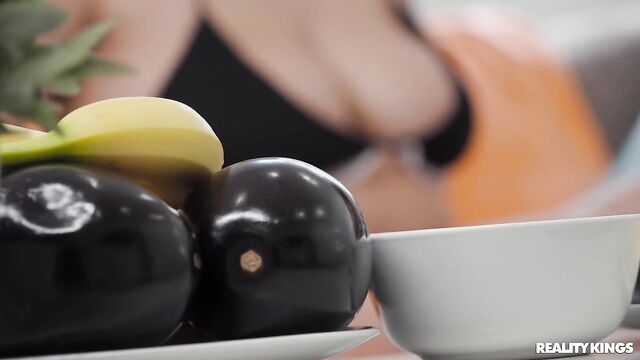 Description:After a quick dip--and tittyfuck--in the pool, James Angel brings his gf Adaline Star inside for the surprise taste test he's set up for her! He blindfolds the curvy blonde and has her see if she can guess the fruits and veggies by taste, then slips his cock in her eager mouth too. James gets a taste of Adaline's pussy before she sits on his cock and gets fucked nice and hard!