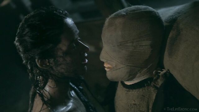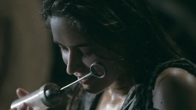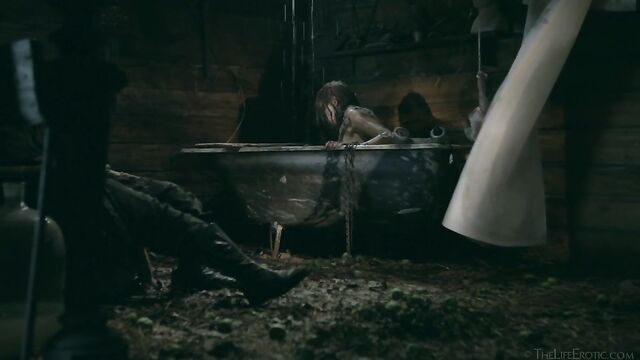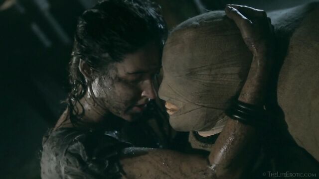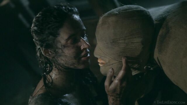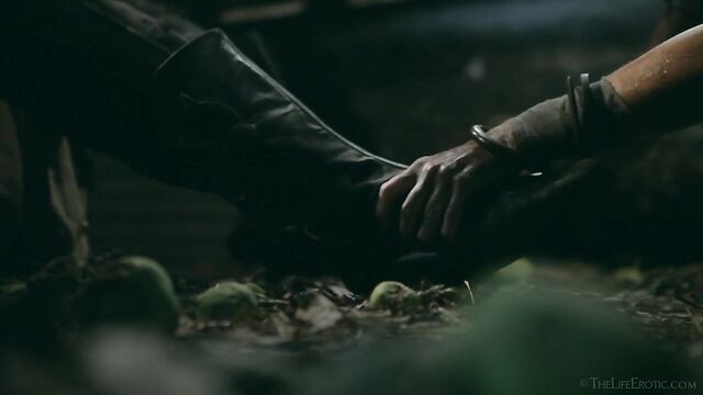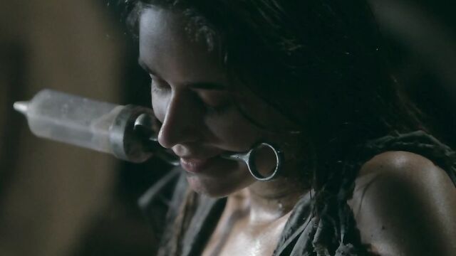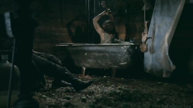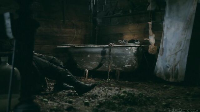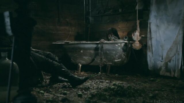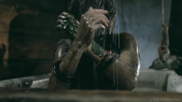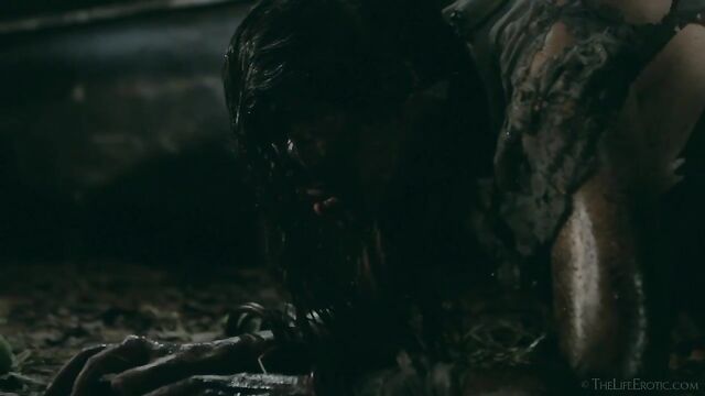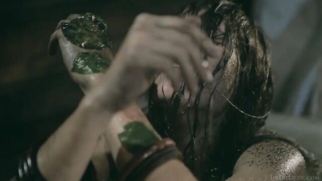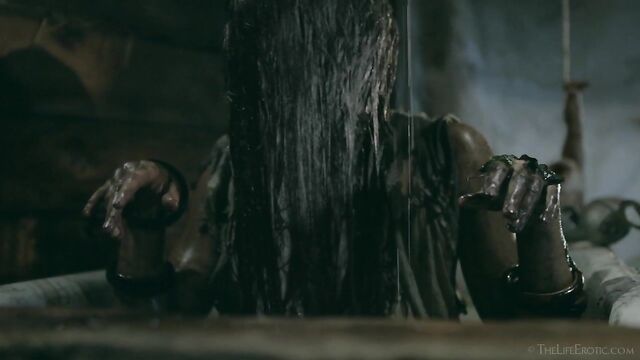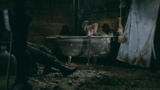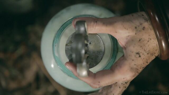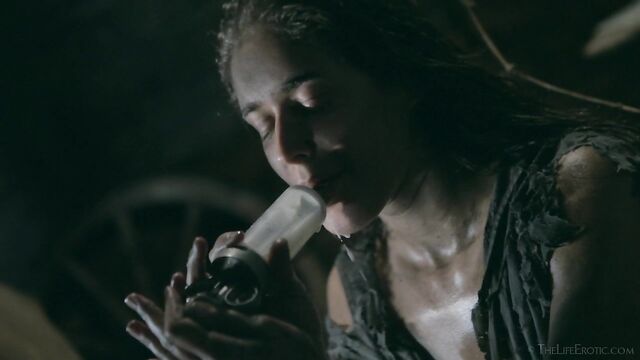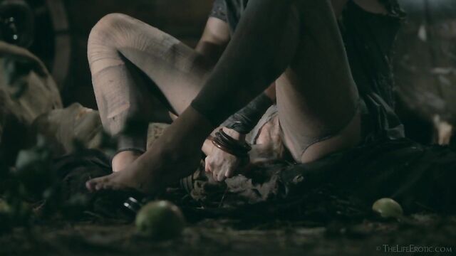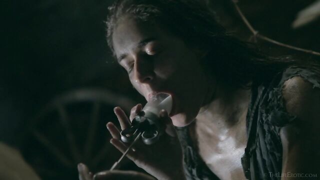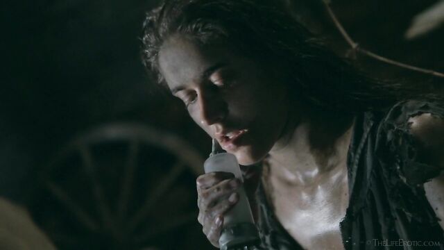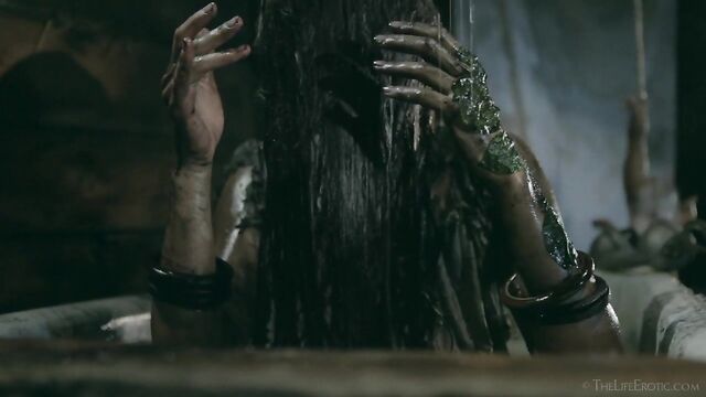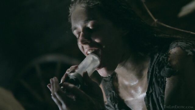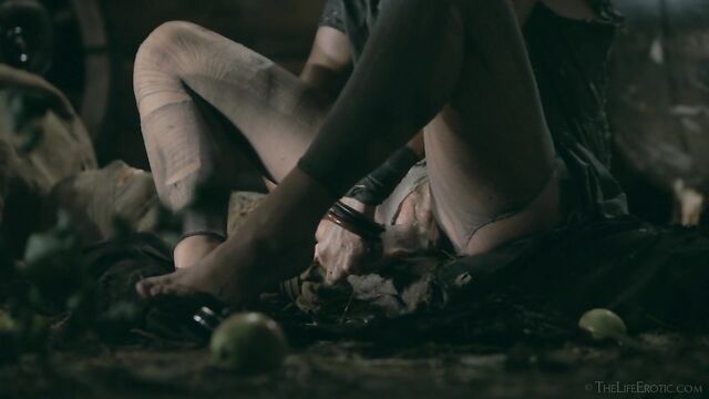 Description: Maverick auteur Paul Black and his stunning muse Emily J push the boundaries of erotic movies in this chapter of the surreal Scarecrow series. Following explicit animated opening credits, the scene is a ramshackle farm building. A sinister baby doll hangs upside-down by its one remaining leg, spinning at the end of a rope, and rainwater runs through the leaky roof to collect in an old bathtub. The water is green and fallen leaves and apples float on the surface – and, suddenly, a hand emerges from within it to grasp a rusting chain and collar on the side of the tub. A covering of decaying green leaves makes the fingers appear almost zombie-like. Music plays via an old telephone and a weird cuckoo clock strikes. Meanwhile, the occupant of the bath slowly sits up, shivering and shaking. It’s Emily J, barely recognizable in tattered rags, her long hair covering her face and her beautiful body streaked with mud and grime. Her trademark bracelets look like manacles around her forearms. She rises up to exit the bath, only to fall to the dirt floor, but desire drives her to crawl across it towards the scarecrow of the title. He’s fashioned from a mannequin and she drags herself up to straddle him. As a love song plays, Emily embraces the scarecrow tenderly, stroking his face which is covered in dirty bandages, with only his lips left exposed. Next, she drags him onto the floor then fills a large, old-fashioned syringe with milk from a pail, takes the barrel into her mouth like she’s sucking cock and squirts out the creamy fluid. Much of it dribbles down her chin and the front of her body – including her hairy pussy, exposed by her tattered pantyhose as she parts her thighs. Cackling, she sprays another load into the air – it hits a lightbulb, which explodes, plunging her into darkness. Then she squirts yet more milk into her pussy, pumping the plunger. With the handle of the syringe clenched between her teeth, she splays her pussy lips with her fingers and squirts it back out again. She sucks on her fingers, drooling over them, grabs a large cob of corn, peels back the husk and rolls a condom on it. She slides this deep inside of her pussy, drools on her fingers to lube her clit, and pounds herself with it in hard strokes, stretching her snatch open. Her face is now a picture of lust-crazed ecstasy. The scarecrow lies at her feet and she strokes his face with her toes. Moaning, drooling and laughing, she frigs herself to orgasm, with the corn cob sunk deep inside of her – as she cums, she’s virtually sobbing with relief. Slowly, she withdraws the huge, bumpy shaft of the corn, removes the condom then slowly and sensually eats some of the sweet kernels, before tossing the rest in the bathtub to float before the picture fades. Keep watching after the end credits to see rehearsal outtakes.
