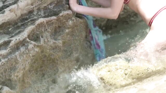 Wet lady with a hot body showing off in the water