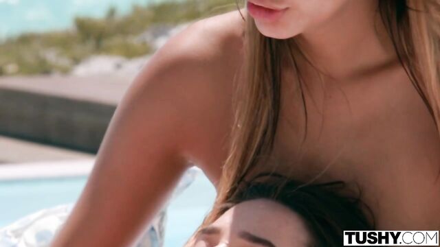 Sweet babes Gianna Dior and Liya Silver are enjoying outdoor anal fuck