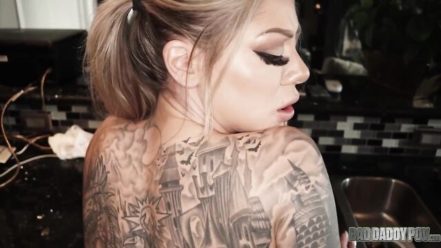 Description:Busty babe Karma Rx is busy washing the dishes while her step-daddy watches her from behind. She is wearing a tight crop top and denim shorts. Her step-father continues to ogle her busty tits and thick ass. Karma tells him to leave her alone. However, her step-daddy seems to have a different plan. Karma can’t do anything but let him have his way, especially when he reminds her who pays the bill. Karma’s shirt gets accidentally splashed with water. She removes her shirt to wash it in the sink. The sight of her huge naked tits is too much for him. He can’t contain his feelings any longer. He brings out his dick and asks his step-daughter to help him out. Karma is reluctant at first. However, the thought of having a new car changed her mind. Karma gets down on her knees to suck his cock. She worships his cock like crazy. She licks, sucks and kisses his hard cock. Her blowjob only made him hornier. He commands her to take off her shorts then bend over. He stuffs his hard cock into her tight pussy. They fuck doggystyle by the kitchen sink. The two transfers to the couch for more comfort. He lets her ride his dick in a cowgirl position. Her big boobs bounce with every thrust. She spreads her legs to make her wet cunt more visible to the camera. They continue to fuck in this position until she creams on his cock. Karma turns around. She is now in a reverse cowgirl position. She slides his cock in and out of her pussy. Her thick ass wriggles as she humps on his dick. The two continue to fuck each other, changing their position multiple times. She even used her big boobs to titty-fuck his hard cock. Her step-daddy keeps on pounding her pussy until he feels like he is about to cum. He pulls out his penis from her vagina then showers her voluptuous body with semen. Karma smiles brightly to her step-father. They promise each other to this every month.