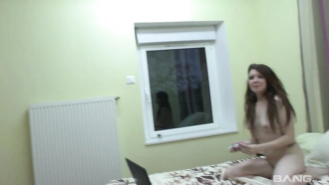 Cutie brunette Angela Kiss is trying double penetration in the bedroom