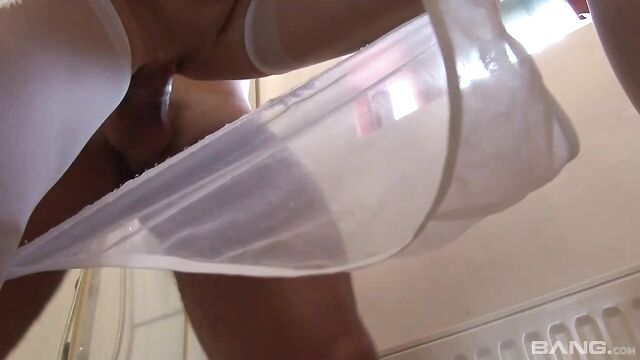 Description: Imany Many is holding onto the porcelain thrown as this stud fucks her from behind. Imany always wears thigh high stockings and garters for just this reason! They allow easy access to her pussy so she can get up on a hard cock on the fly! #nympholife
