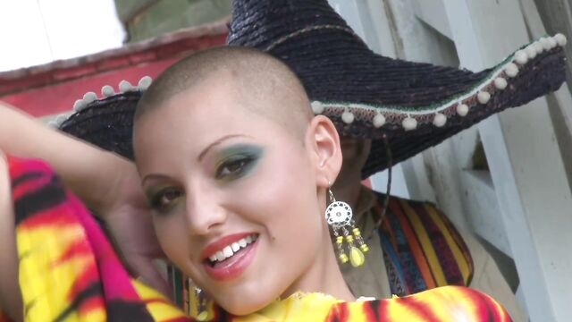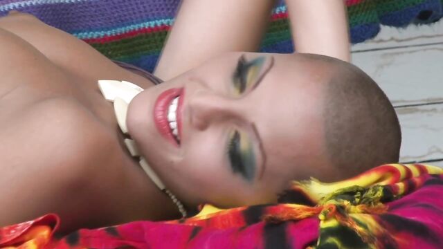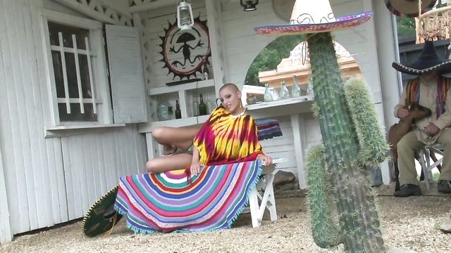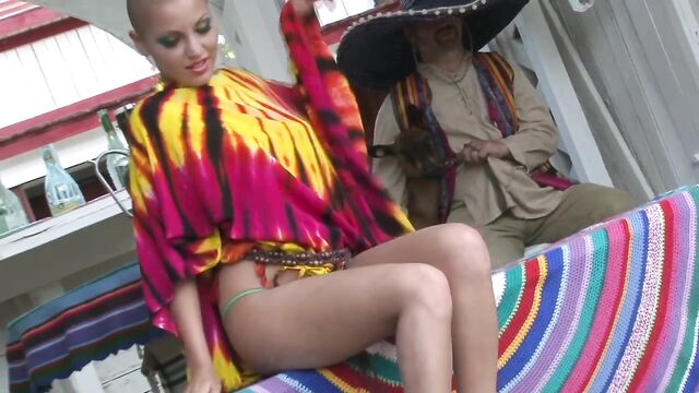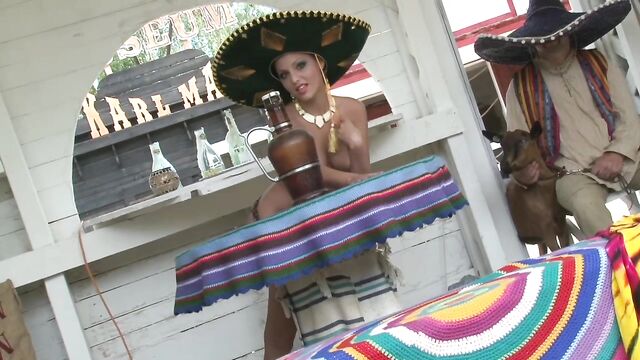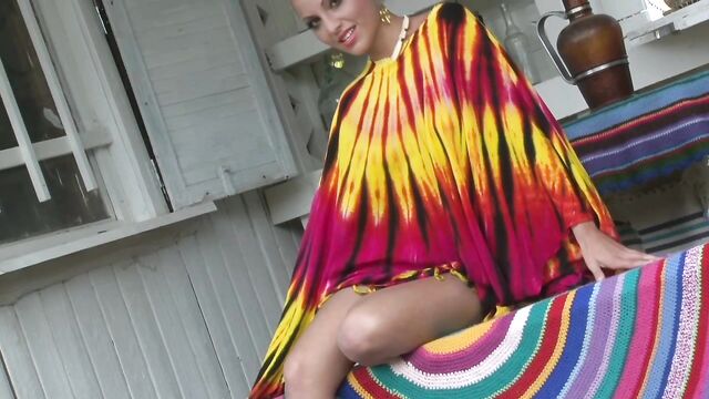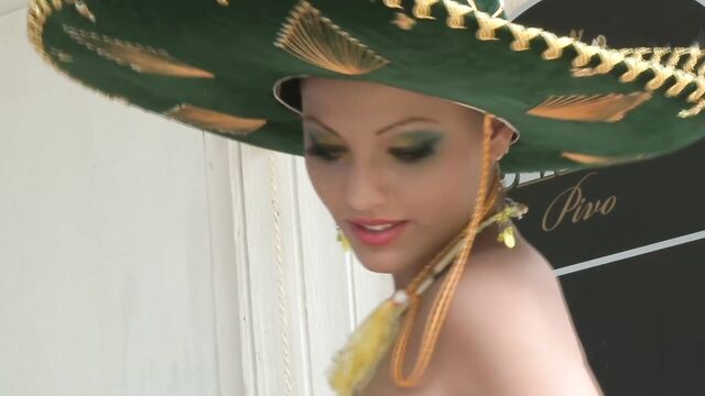 Spicy slender mademoiselle in a big hat shows off her naked curves