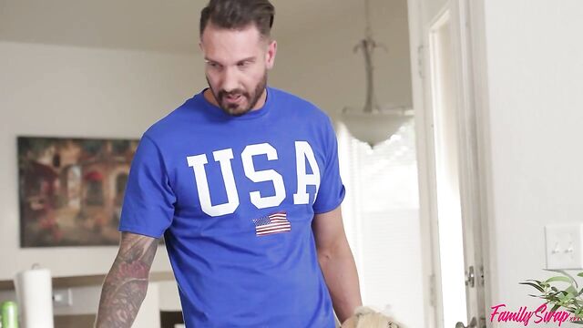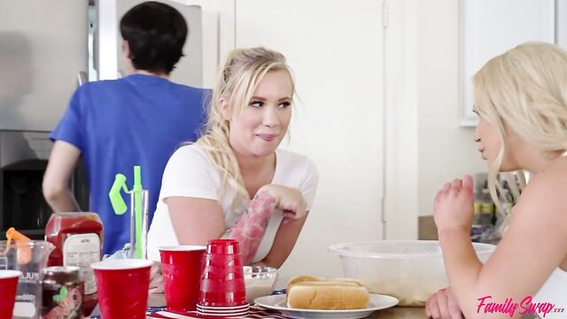 Description: What would happen if three families each contributed one member to create a new family? In this episode of Family Swap, Spencer Scot and Bailey Brooke are waiting on swap dad Quinton James to get done barbecuing. To pass the time, they lift their shirts to flash their titties and flirt nonstop with swap son Ricky Spanish. When the girls come on even hotter by grabbing a hot dog bun and putting it over Ricky's hardon, Ricky freaks out. He's terrified of Quinton, so he doesn't want to do anything that might upset his swap dad. They almost get caught when Quinton comes in to tell them the food's almost ready, at which point Ricky retreats to the couch.The second Quinton is gone, Bailey and Spencer follow Ricky. Their whole reason for joining the swap was to get some fresh dick, and they're not about to pass up the opportunity to do just that. Ricky tries to get them to cut it out, but as soon as he's on the receiving end of a double BJ with Spencer guiding Baily in better form, he can't help- but agree that this is the best call. The busty girls even deliver titty fucks just for Ricky. Spencer is the first to climb into Ricky's lap and bounce away in reverse cowgirl as Bailey helps her out.Bailey is just getting her ride on with Ricky's stiffie in reverse cowgirl when Quinton walks in with the hot dogs. He flips out, but Spencer thinks fast and pulls his pants down to give him a BJ. Eventually Spencer's efforts pay off and her quick thinking makes Quinton relent. He decides that it's not so bad and that watching can indeed be pretty hot. As Ricky gets Bailey on her knees to fuck her in doggy, Spencer eases Quinton to the couch so she can really eat him all up. Quinton gives Spencer a nice pussy feast as Bailey blows Ricky. Then Quinton sinks balls deep into Spencer's juicy twat as Bailey gets on her hands and knees for Ricky to do her in doggy while Quinton comes over for a double BJ. Next, Quinton lets Bailey climb on to ride his fuck stick while Spencer does the same with Ricky. Spencer rolls onto her back so Ricky can watch her big boobies jiggle as he fucks her. Meanwhile, Quinton bangs Bailey from behind as she uses the couch for support. The girls swap partners so Bailey can ride Ricky and Spencer can ride Quinton, and then each of them gets on their knees so the guys can switch it up and then give it their new partners in doggy. That's what it takes for Quinton to glut Bailey with a creampie, and for Ricky to od the same for Spencer in a swap family orgy.