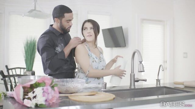 Description: When Stallion came home to find his girlfriend Valentina Nappi baking in the kitchen, he just couldn't wait for her to finish and went in for the kiss. Without thinking, Valentina put her hands on his chest and dusted the front of his black shirt with flo