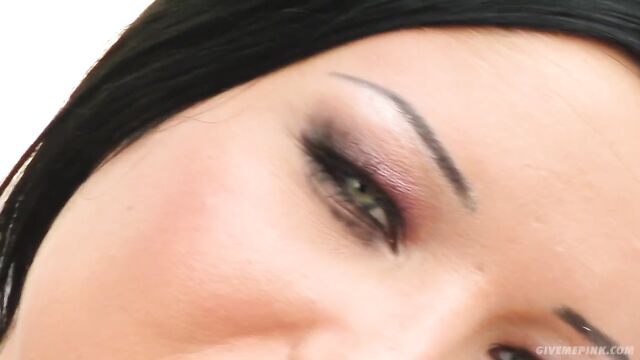 Lovely brunette with big bottom Angelica Heart fucks with a red dildo