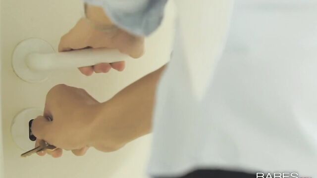 Description:The poor lady from Human Resources had her work cut out for her when she went to Bruce's floor to show them the new earthquake safety drills. First, he was barely able to pay attention, with Alexis Brill standing in the doorway with him. And when they went under the desk to practice taking shelter, Bruce and Alexis started fooling around almost immediately! When the HR woman stepped out of the room to answer a call, Alexis climbed on a seat and pulled her panties to the side so Bruce could suck on her clit and taste how wet her pussy was. Good thing the phone call lasted a long time, or the HR woman would have come back to find Bruce ramming his cock balls deep inside Alexis's tight pussy.