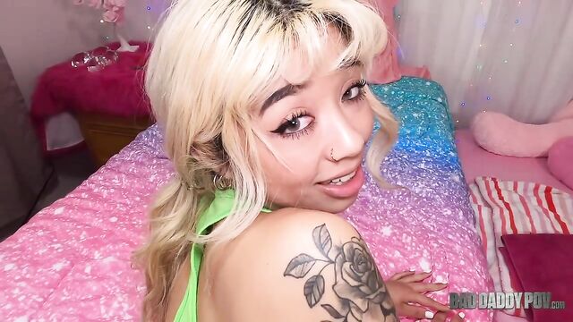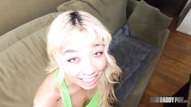 Description: After her step daddy fins out she's been doing porn, Gia Dibella sucks and fucks his cock.