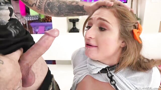 Description: Plump, young Skylar Snow is an oversexed slut tired of dating boring guys. Meeting director Bryan Gozzling online changes her forever! The buxom babe gives herself an enema and meets him for a ferocious anal date. Bryan slathers her in oil and fingers her to squirting! He spits into her face and fucks her throat. Skylar crudely slurps her girl cum from the floor and tongues bunghole. Bryan stuffs his hand down her throat while sodomizing her, and Skylar spews gag-spit through harsh, ass-to-mouth fellatio. Bryan rewards her with a cum facial.