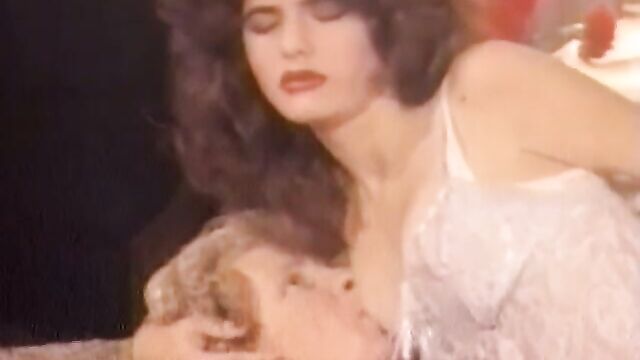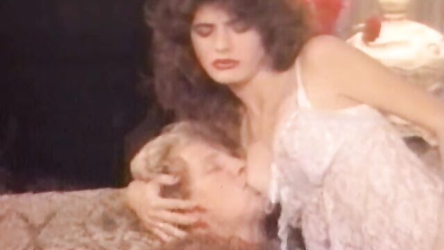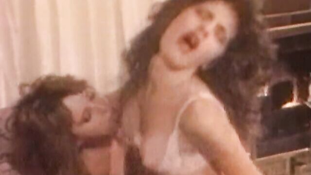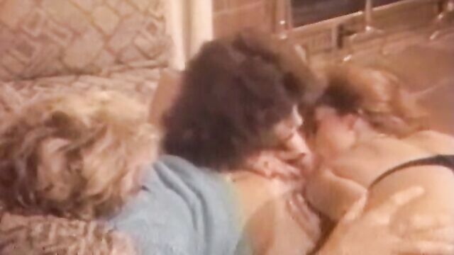 Vintage hard fuck with a passionate big-boobed brunette and her gf