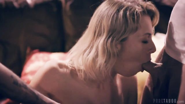 Great-looking blonde Zoey Monroe is pleasing two horny men on the knees
