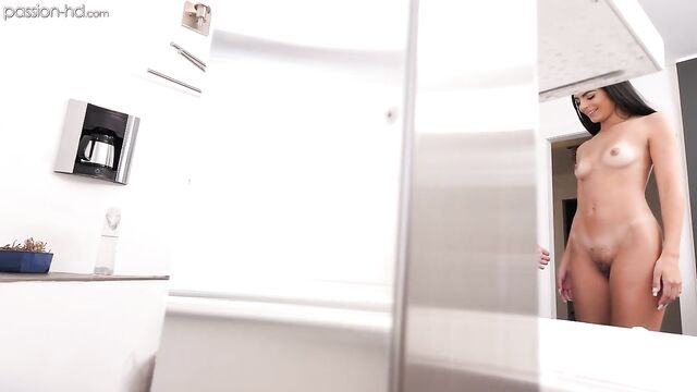 Passionate slender Latina Angel Gostosa opens her shaved pussy for a big dick