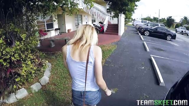 Description:I was headed to my favorite lunch spot when Lilli came out and suddenly, I wasnt hungry anymore. You know how I roll, when I see a pretty girl I gotta stop them and try to get them in my studio for some flicks. If the shoot becomes something else then hey- thats a perk! After some idle chat Lilli agreed to let me take topless of her for a little bit of scratch right there in the parking lot. I took her back to my home studio and since I know how to play this game, I kept egging her on to do more and more for more cash until she finally gave up that ass! This hot ass blonde chick knew what the deal was and she was down to do almost anything I asked her for some dough - even sucking my cock and letting me beat the pussy up in a utility closet! We didnt even make it back to my place to shoot and we ended up fucking in the alley behind my building! After I covered her plump titties with my jizz Lilli took the rest of my cash and we got the fuck out of there.