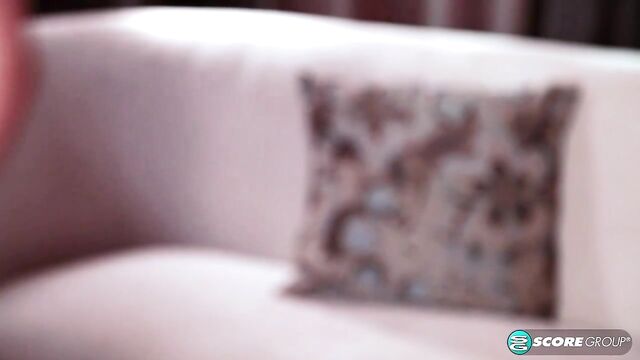 Good-looking redhead chick Harmony White strokes a nice black dick