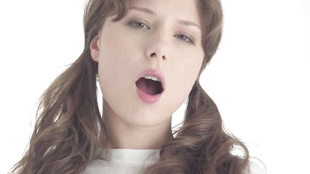 Description:Cute brunette Satin Stone is on her bed grooving on her hands and knees, listening to some music on her headphones. She's wearing a snug pink skirt and white T-shirt, a pair of pastel pink ankle socks on her feet. She wiggles and wriggles, shaking her ass at you, her panties on show beneath the hem of her skirt. She's in another world in those headphones, one in which she's happy to lift her top and caress her naked breasts, slip her hand down between her thighs and stroke herself through her panties. That gets her turned on and then she's rubbing at her clit, licking her finger and pulling her panties aside to strum her slit some more. She takes off her top and skirt, sweet titties jiggling as she slips her skirt down, then she down on her knees with her ass right in front of you, panties around her thighs, stroking her shaved pussy. Soon, she's naked but for her socks, the headphones put aside, two fingers deep inside her tight hole as she masturbates hard.