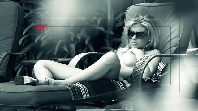 Awesome soloing blonde is touching her wide-opened shaved pussy