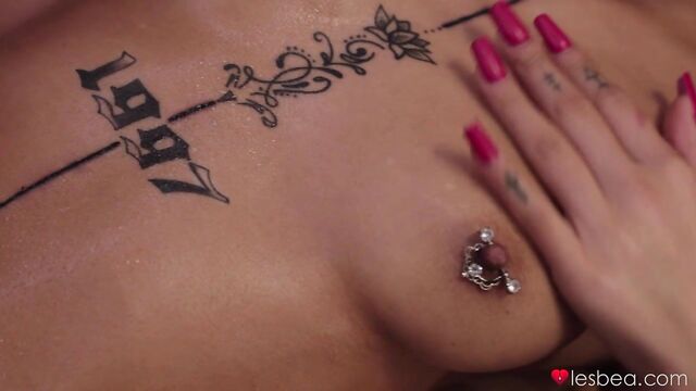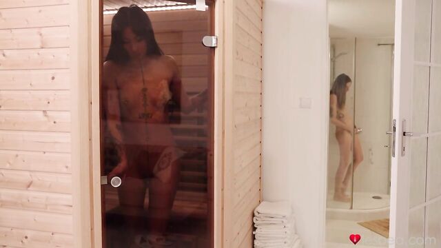Description: Dark-haired babe Mali Ubon is having a steamy session alone in the sauna. The inked-up hottie stimulates her clit by gently massaging it, and sensually touches her pierced nipples. Afterwards, Mali joins stunning blonde Alba Lala, who is masturbating in the shower. The two lesbians share a kiss, then Alba kneels in front of Mali to taste her sweet pussy juices. After making Mali cum, Alba sits on her face, wanting to be pleasured by her gorgeous lover. Next, Alba puts Mali in the doggystyle position so she can eat out her pussy, then slides her fingers deep into Mali's tight hole. The amorous pair end this passionate encounter with a kiss.