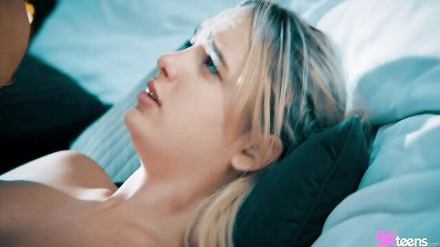 Awesome blonde model Anna Khara fucks with a long brown penis in the bed
