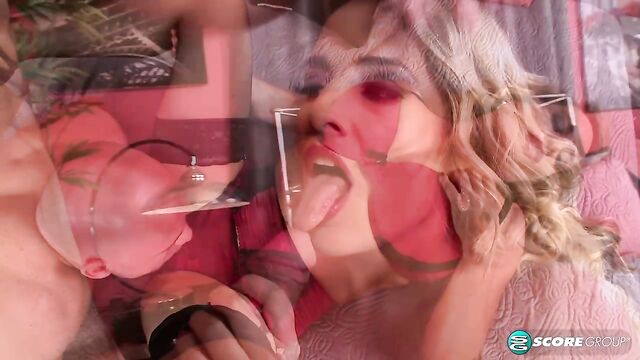 Description: Here cums Maggie Green, looking hot and bothered in her sexy red lingerie. Eye-banging the camera, she asks if you like watching her play with her "big, fucking titties." Maggie's hands move down to her pussy to rub the lips. "And what about these crotchless panties? Does it get your cock hard to watch me rub my fucking pussy? Do you want to watch me get fucked by a nice, huge, fucking cock? You know you do." What a dirty mouth. She's great. Maggie lies back on the bed. JMac is eager to fuck the big-titted blonde again. He was the third guy at SCORELAND to lay the pipe to Maggie in "Who's The Boss?" Maggie eye-bangs him too, puts her shoe on his junk. Teases him. The teasing ends soon. JMac will be splitting her pussy lips apart and plunging into her pink hole. But first, some head games for Maggie. JMac tongues her lickety split sending tingles throughout her sexy body. After sucking Maggie's nipples, JMac wants her lips locked on his cock. She sucks it hard, spit drooling out of her mouth. She tries to deep-throat him all the way but it's too big. She gags, then takes his prick in her hand and jacks him. Next, JMac accepts Maggie's invitation to bone her boobs and he tit-fucks her hard and fast, holding her arms to keep her close to him. Maggie climbs into bed and gets on her back. The crotchless panties make for easy access for JMac's cock. He spreads her legs, sticks his tool all the way in and rams her in a power fuck, thrusting like a machine, merciless and deep. At one point, he picks her up off the bed and fucks her standing up as she holds on. It's epic sex.