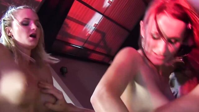 Good redhead doll with awesome big boobs takes a part in a passionate orgy
