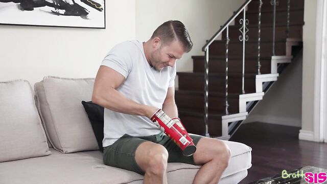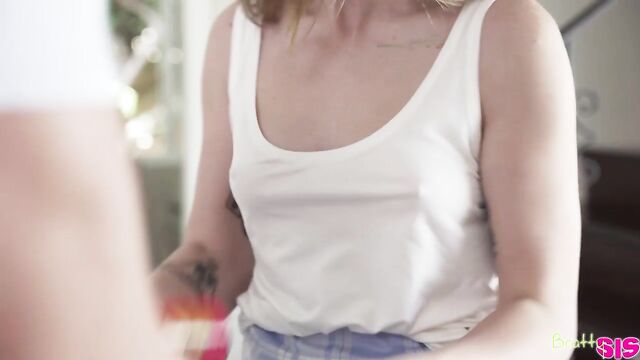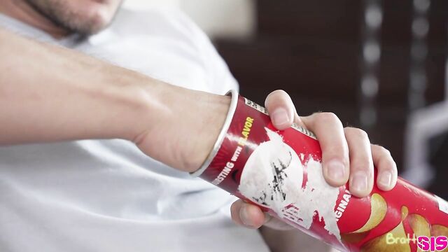 Description:Codey Steele really loves potato chips. His stepsister, Alex Kane, points out that he's addicted. She goes on to wonder if Codey is going to pull a prank on her like putting his dick into a potato chip can and having her pull it out. Codey claims he won't, to which Alex mumbles that that's good because it might get stuck. She knows she's messed up as soon as the words leave her mouth, but Codey wants to know more about when his stepsister has seen his dick. Alex tries saying that Codey leaves the door open when he's showering, which Codey immediately denies.Immediately after Alex leaves, Codey goes back to eating potato chips. First he gets one hand stuck, and then the other hand gets stuck in another can. When Alex returns to the room, she mocks Codey. He begs her to help him, so she drops to her knees and pulls his pants down so his stiffie springs free. Codey claims this isn't helping, but Alex begs to differ. Soon enough, her mouth and hands are busy delivering a combo BJ and handie.Sucking isn't enough for this cum hungry coed, so she gets on her knees so Codey can do her from behind in doggy. Then she climbs into his lap and bounces away in reverse cowgirl. Only then does she help Codey get his hands free from the chip cans so that he can fuck her properly. Codey delivers, driving up into Alex's greedy cooch and then pistoning in and out of her juicy snatch as she lays on her back with her legs spread wide. Once Codey has pulled out and blown his nut all over her shaved puss, Alex grabs a few spare chips to munch.