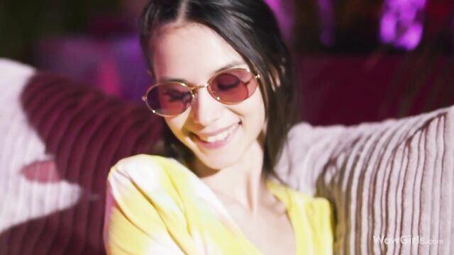 Spicy brunette babe Leona Mia gets pleasure from hard pound