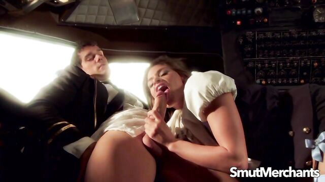 Description:Madeline is a drop dead gorgeous, brunette MILF, with a tanned, toned taut body, who is playing a sexy secret agent, that has snuck into the cock pit of a jet, to use her feminine wiles, to get his secret codes. She voraciously sucks his horse cock, with gusto and verve, proving herself, to be a gifted maestro of cock sucking. Then, lays back, with her legs spread wide, as he licks and tongue fucks, her pretty, honey pot, while she moans ecstatically. Guided in, by her well trimmed landing strip, he vehemently plows his titanic tool, into her hungry hole in missionary, making her moan and wail, in orgiastic exultation. Once in doggie, he brutishly slams his dinosaur dick into, as she moans and howls, with unbridled bestial passions. Then, she ferociously slams her greedy cunt onto his towering tool, in reverse cowgirl, moaning and screeching in salacious jubilation. In a herculean effort, she wildly grinds her cunt onto his monster cock, while he grips her divine ass, furiously thrusting his prick into her, in a standing cowgirl, as she moans and squeals, in depraved rapture, until he explodes shooting his cum deep within her.