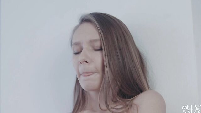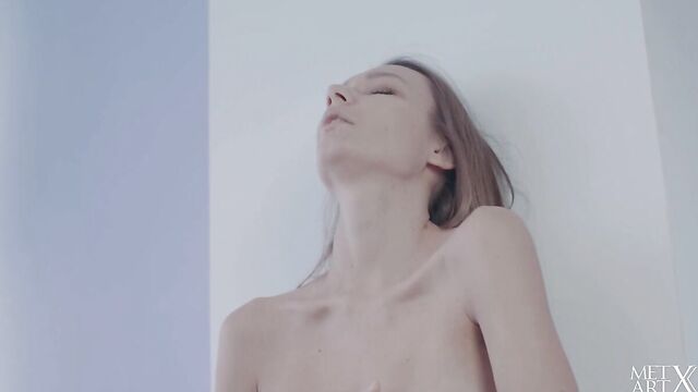 Description:Athletic stunner Mirabella runs through her gymnastic routine in a tight white leotard. She uses a hoop as part of her exercise, flexing and stretching, her lean, slender, petite figure, so striking. Placing the hoop on the floor, she leans over, resting her hands on its rim, waving her cute buns at the camera, then stands and rolls it between her thighs, rubbing it against the crotch of her costume, her pussy lips folding around it from behind the white material. She turns herself on, her desire driving her to slide her top down and stroke her naked breasts. She sits down and rubs her hoop against her pussy again, standing to pull off her outfit and rub her clit. The sexy beauty plays with her shaved slit, nipples stiffening as she toys with them between her fingers. Turning her back, she pushes her ass out and rubs at her pussy between her thighs, lost in her own pleasure.