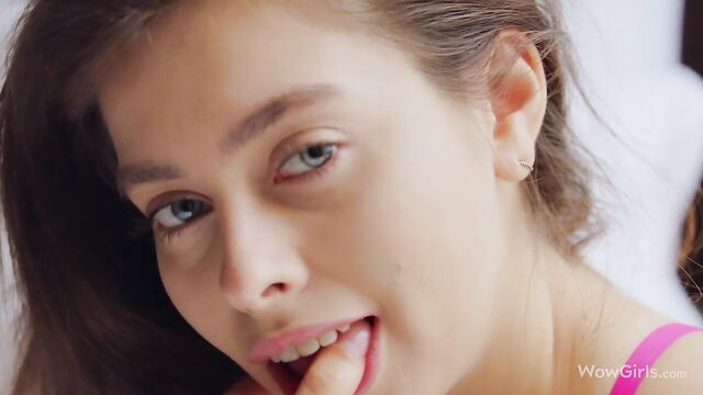 Gorgeous slender brunette Alissa Foxy is touching her pussy