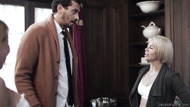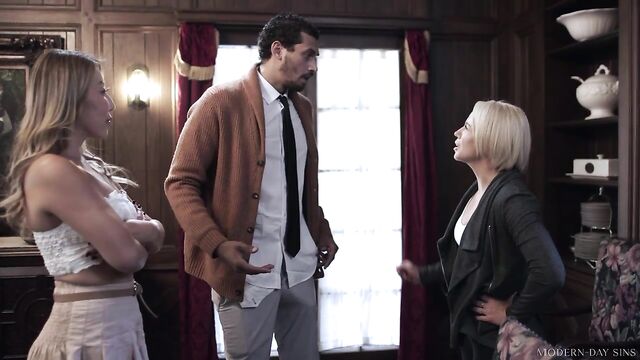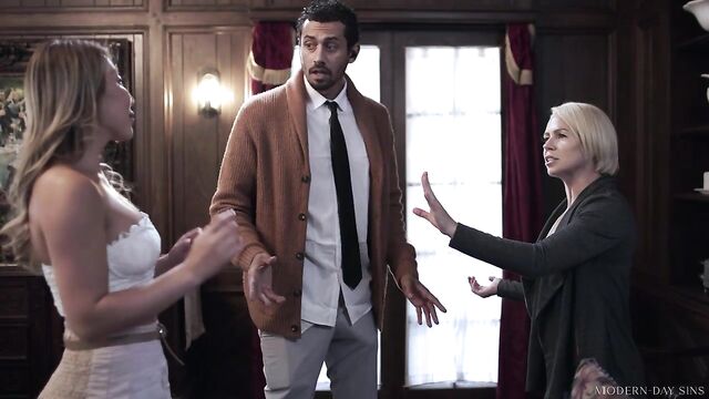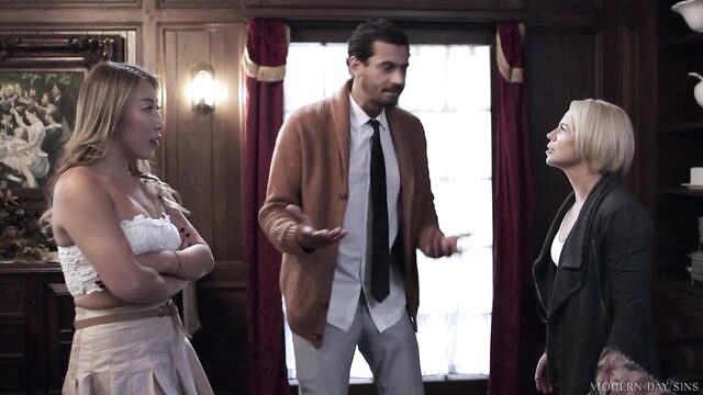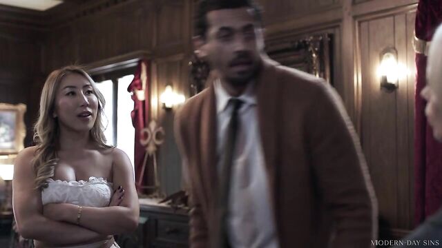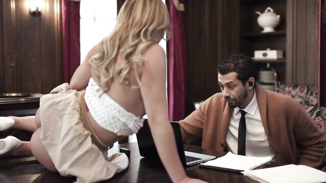 Description:Alex Jones has been having an affair with his mistress, Nicole Doshi, behind his wife Helena Locke's back. Nicole comes into Alex's home and they greet each other excitedly. They don't waste any time and start making out right there in the living room. 'Shouldn't we go to the bedroom?' Alex asks, but Nicole shakes her head- she wants to do it right here, right now. Nicole has only been able to see Alex once a week when his wife goes to yoga class, or when he's not working. It's not enough for her, so she wants to make today extra special.She turns around and hikes up her skirt, revealing a butt plug she has put in her ass. Alex loves what he's seeing, but before he can fool around with Nicole, he gets a work call that he has to take. He goes to his worktable and joins a video call with his work, leaving Nicole feeling dejected. But Nicole has a few other tricks up her sleeve... She climbs on the table and starts to striptease for Alex behind his computer. Alex struggles to maintain his focus on his work call as Nicole reveals her breasts and spreads her legs to rub her tight pussy. She then gets under the table and starts rubbing Alex's cock through his pants, eventually unbuckling his belt to give him a blowjob.Suddenly, Alex's wife, Helena, arrives home and catches them in the act. Alex ends his work call and buckles up his pants in shame. He tries to find an excuse for what Helena saw, but the damage has been done. She's LIVID, and when Nicole points out that the reason Alex is cheating is that Helena refuses to have anal sex with him, Alex doesn't deny it. Thoroughly humiliated and embittered, Helena storms out of the house, leaving her husband and his mistress alone once more.Nicole undresses Alex and then kneels to give him a blowjob as he stands over her. Nicole then sits on the table and lets Alex eat her out, with the butt plug still in her asshole. Alex rises and starts fucking Nicole in missionary. Alex then removes the buttplug and rims Nicole as she squeals with delight. With Nicole's ass ready for Alex's cock, he gives her anal sex as she lies back on the table in missionary. Nicole then kneels in front of Alex again and gives him another sloppy blowjob, after which she puts a leg up on the table and lets him alternate between fucking her pussy and ass in doggystyle.Nicole wants to taste Alex's cock again, so she gives him another incredible blowjob. She then strips totally naked and squats over Alex in cowgirl as he fucks her ass some more. With Alex sitting in a chair, Nicole lowers herself to wet his cock with her mouth and then slides his cock back into her asshole in reverse cowgirl. He then props her onto the table for more anal in doggystyle, finishing with a cumshot on her asscheeks. Though Alex's day may have started with a juggling of priorities, it's definitely ended with one of those priorities taking center stage: Nicole and her incredible ass.